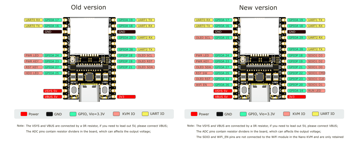 ! Обратите внимание, что есть разные ревизии платы LicheeRV, и GPIO отвечающие за Reset и Power тоже разные (если вы покупали девайс в 2026 году или позднее, то скорее всего у вас уже последняя ревизия). Так что смотрим картинку и внимательно подключаем. Не путаем GND и GPIO. Это важно, особенно если используем схему с транзистором.